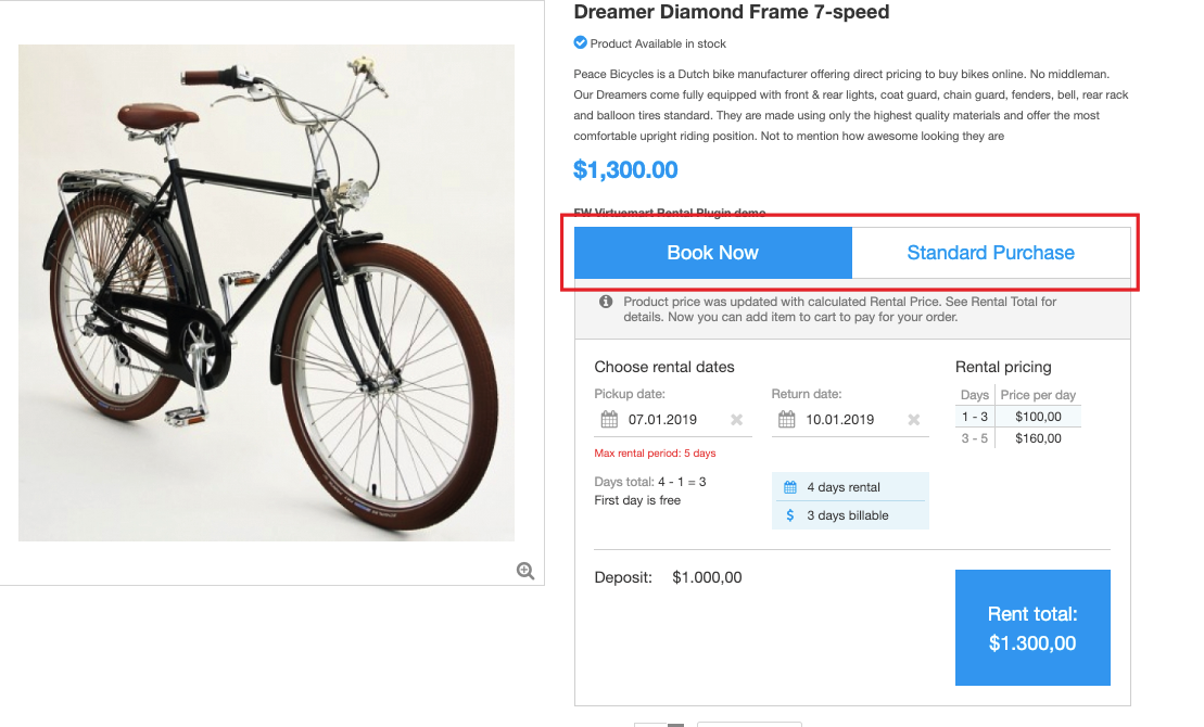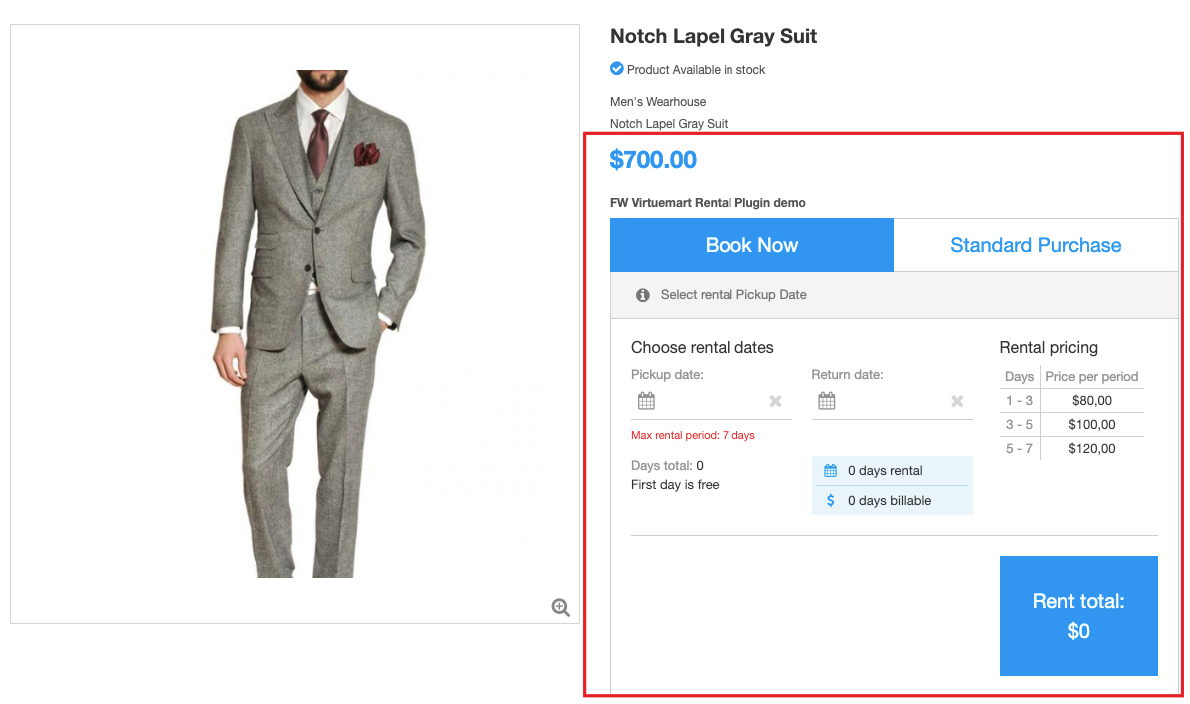 FW VM Rental plugin integrates seamlessly with Virtuemart component adding more functionality to your product page. The configuration process is as easy as ABC.