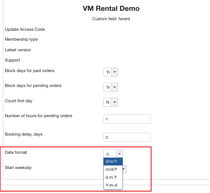 FW Virtuemart Rental – Documentation