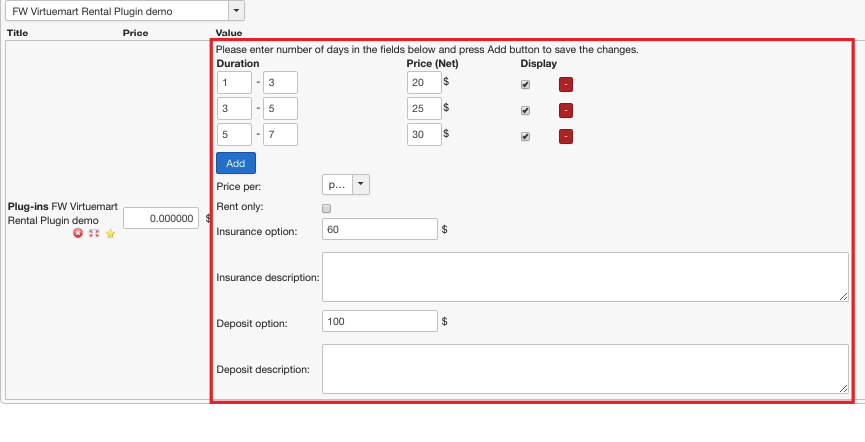 FW Virtuemart Rental – Documentation