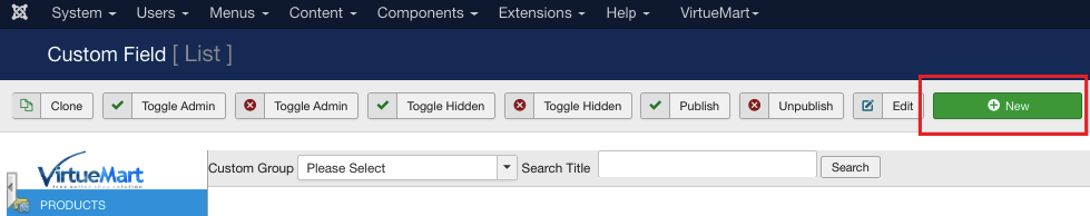 Go to the Products section of VirtueMart control panel.